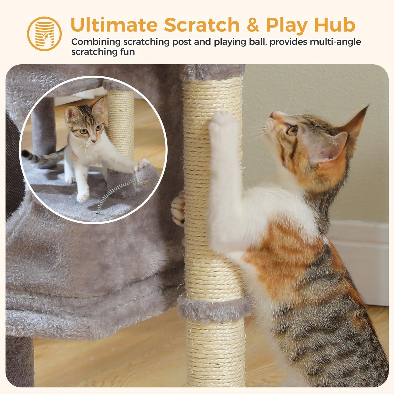 Create the perfect environment for your feline companion with these expertly designed cat trees that combine comfort, functionality, and fun in one elegant package. The spacious perches with raised edges offer secure lounging spaces where your cat can survey their domain in complete comfort. For times when they seek privacy, the enclosed hideaways provide cozy retreats perfect for peaceful napping or quiet observation. Durable sisal scratching surfaces address your cat's natural scratching instincts while protecting your furniture. These textured posts and platforms support healthy claw maintenance and provide excellent stretching opportunities. Interactive elements including spring toys and dangling balls encourage active play, stimulating your cat's natural hunting behaviors and providing essential physical activity. The varied heights and platforms create engaging environments for climbing and exploration. Designed with stability and space conservation in mind, these cat trees feature sturdy construction that withstands active use while fitting seamlessly into your living space. The compact footprint makes them ideal for any room, offering comprehensive feline functionality without clutter. Easy to assemble and maintain, these trees provide everything your cat needs for play, rest, and scratching—all in one attractive unit that complements your home décor. Treat your feline friend to their new favorite destination—order today and transform your cat's daily routine into an adventure of comfort and joy!