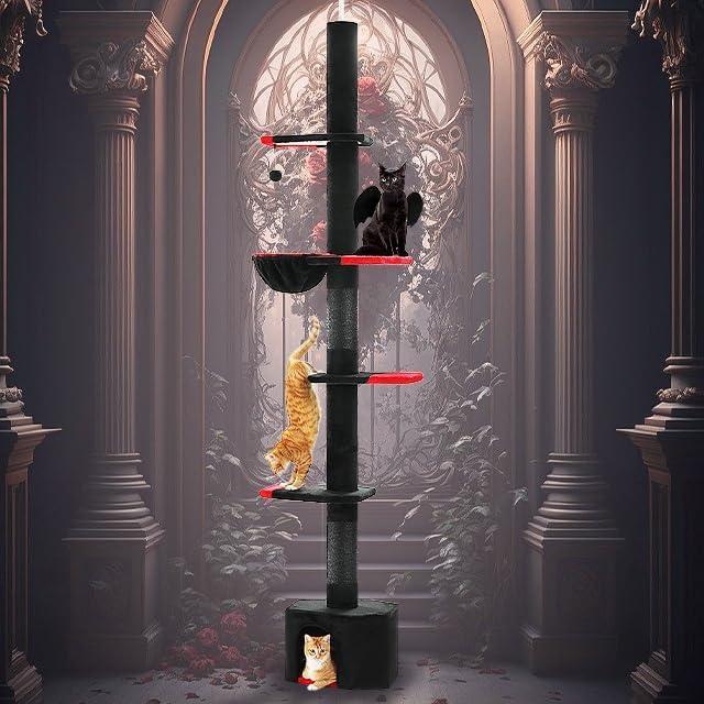 imageFloor to Ceiling Cat Tree Height 85112 Inches Adjustable Tall Cat Tower 7 Tiers Activity Climbing Tower Large Cat Tree with Cozy Hammocks 5 Platforms and Scratching Posts for Indoor CatsBeigeBlack