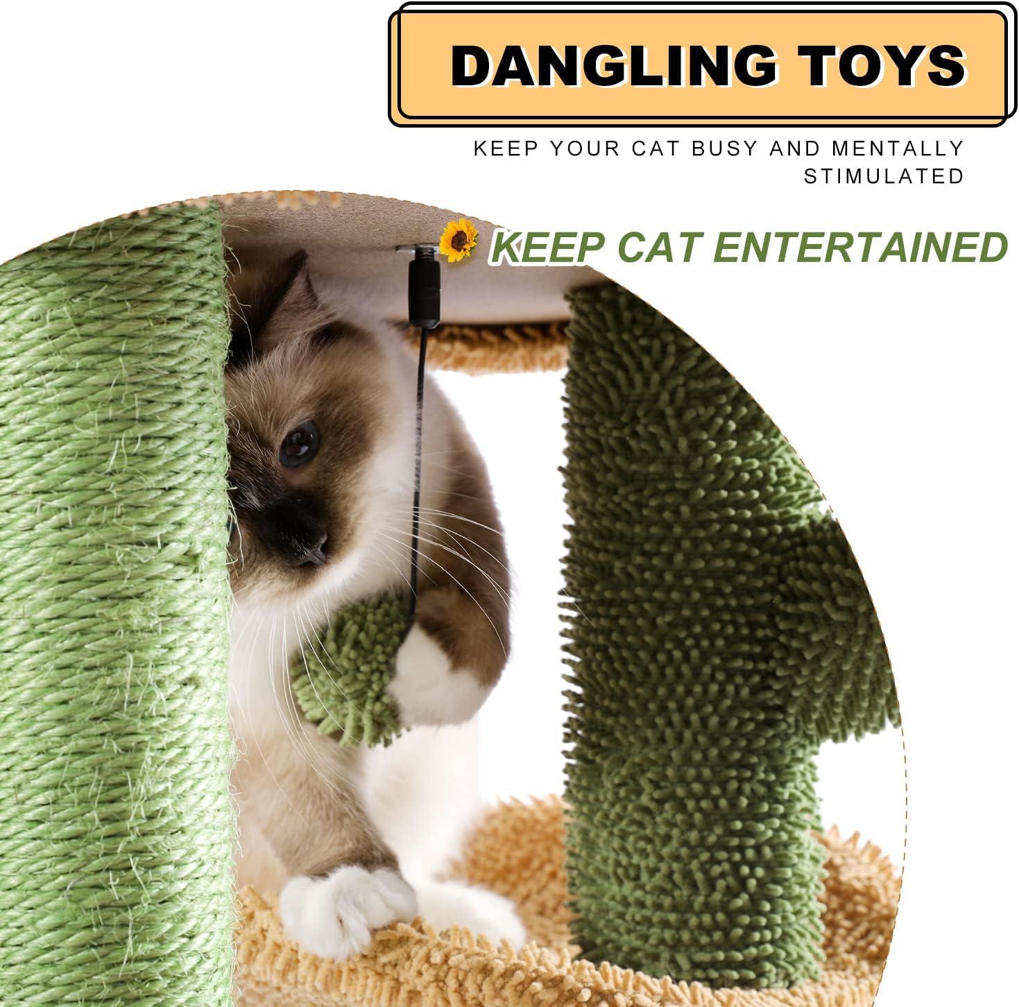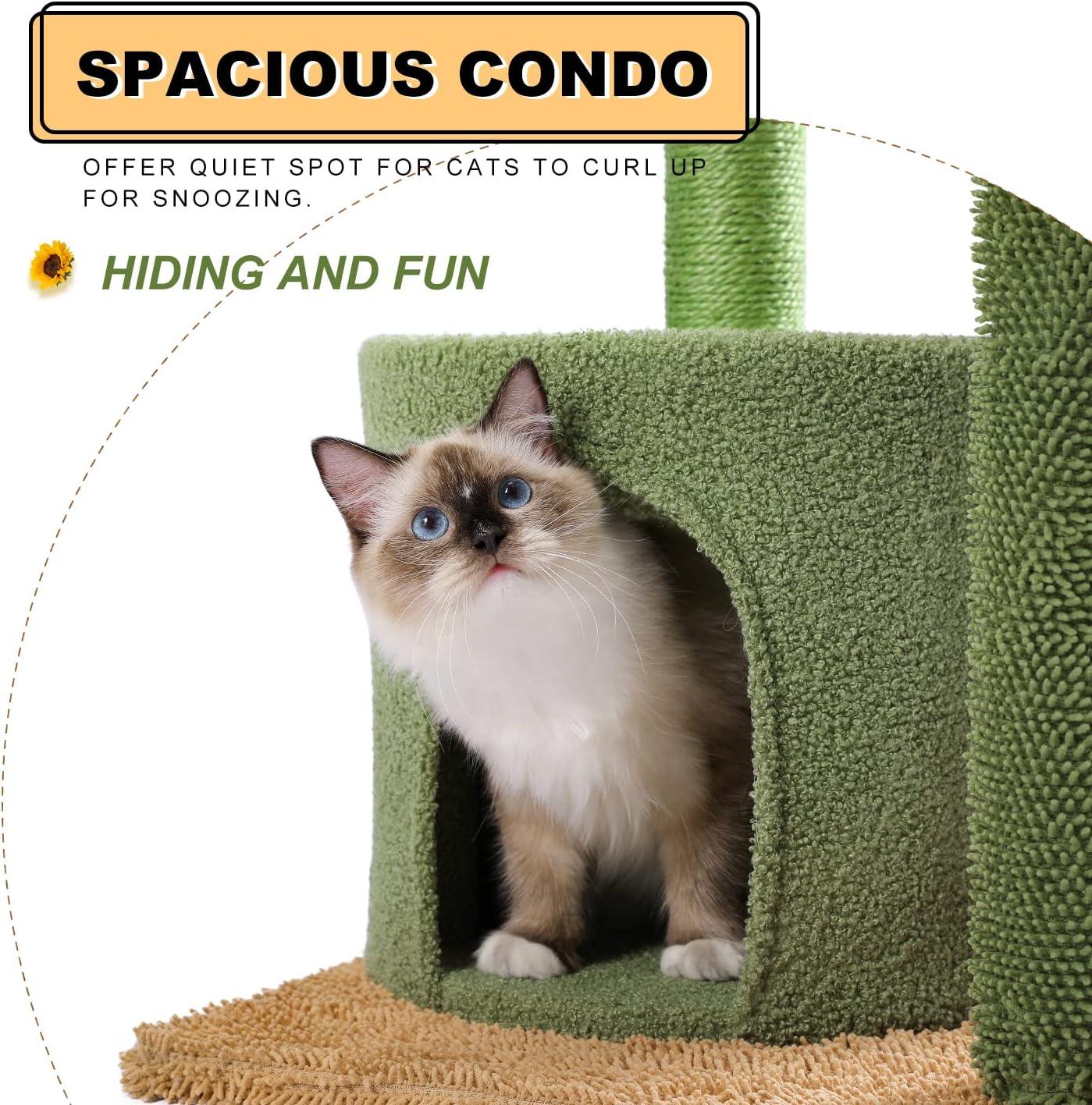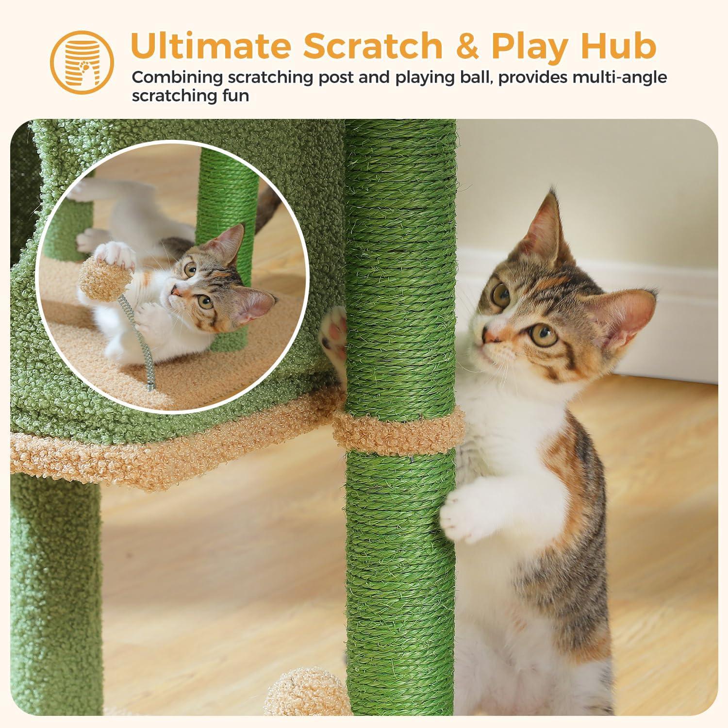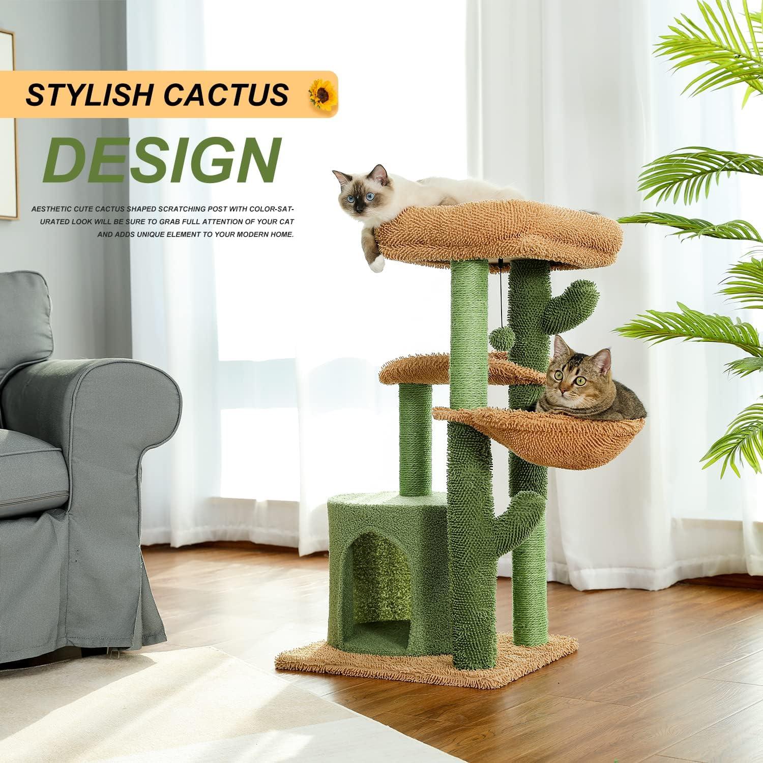 PAWZ Road 38″ Multi-Level Cactus Cat Tree with Scratching Posts, Cozy Condo, and Hammock – Stylish Cat Tower for Indoor Cats(Cactus Green)