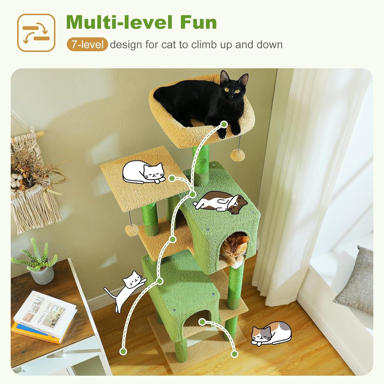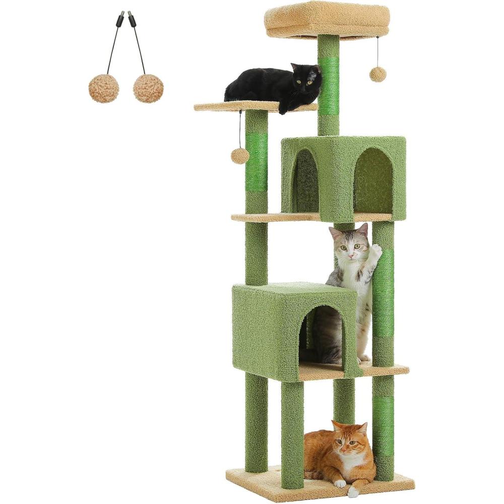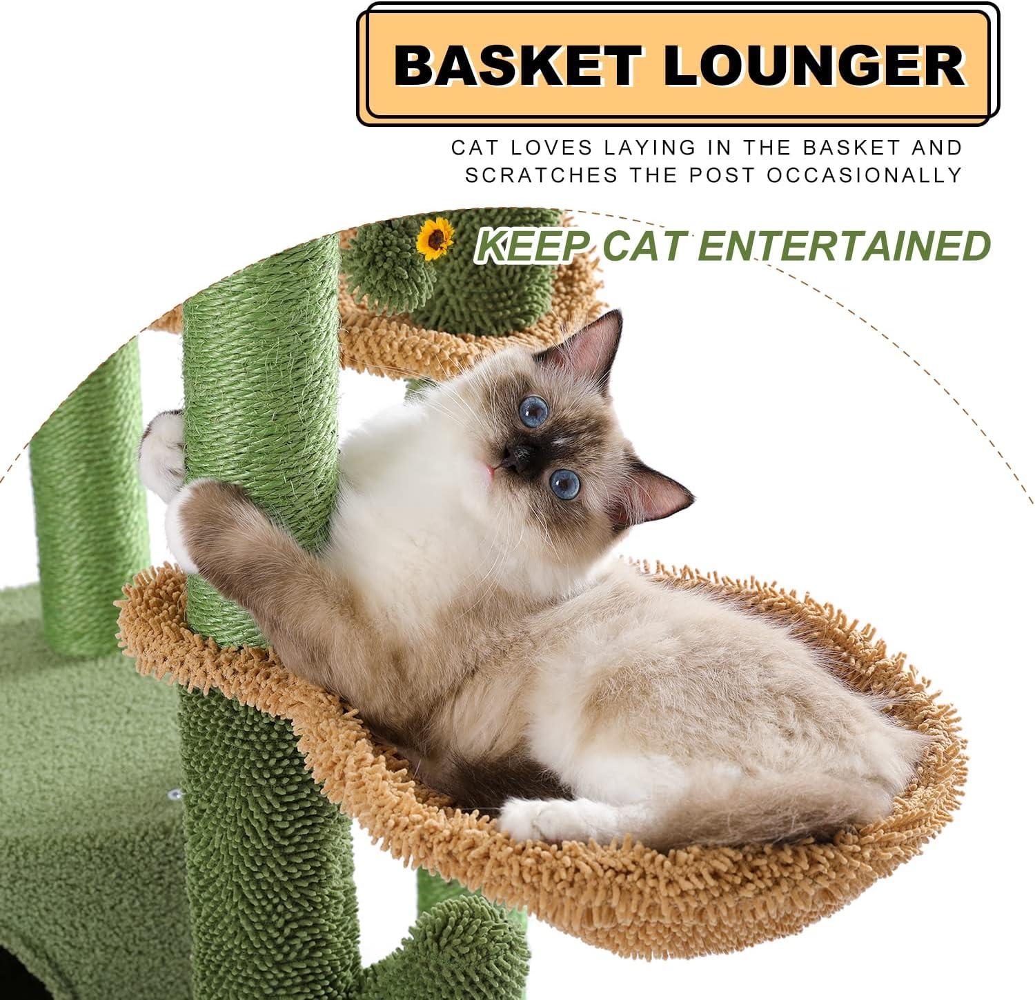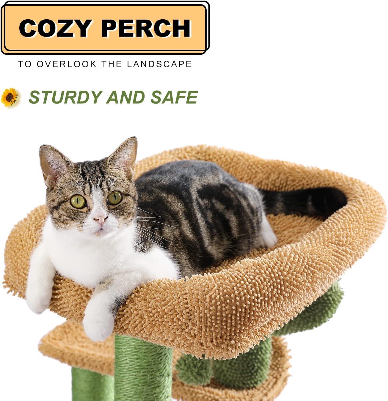 PAWZ Road 38″ Multi-Level Cactus Cat Tree with Scratching Posts, Cozy Condo, and Hammock – Stylish Cat Tower for Indoor Cats(Cactus Green)