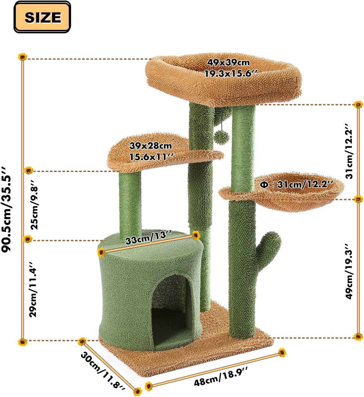PAWZ Road 38″ Multi-Level Cactus Cat Tree with Scratching Posts, Cozy Condo, and Hammock – Stylish Cat Tower for Indoor Cats(Beige)