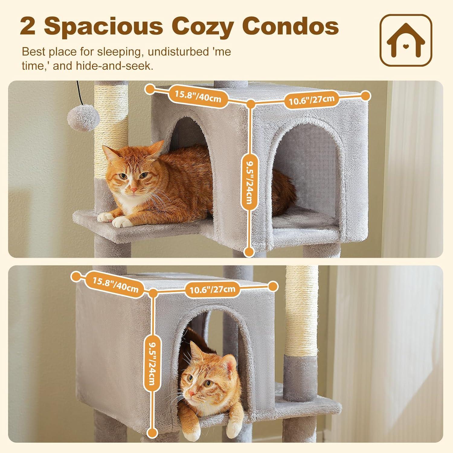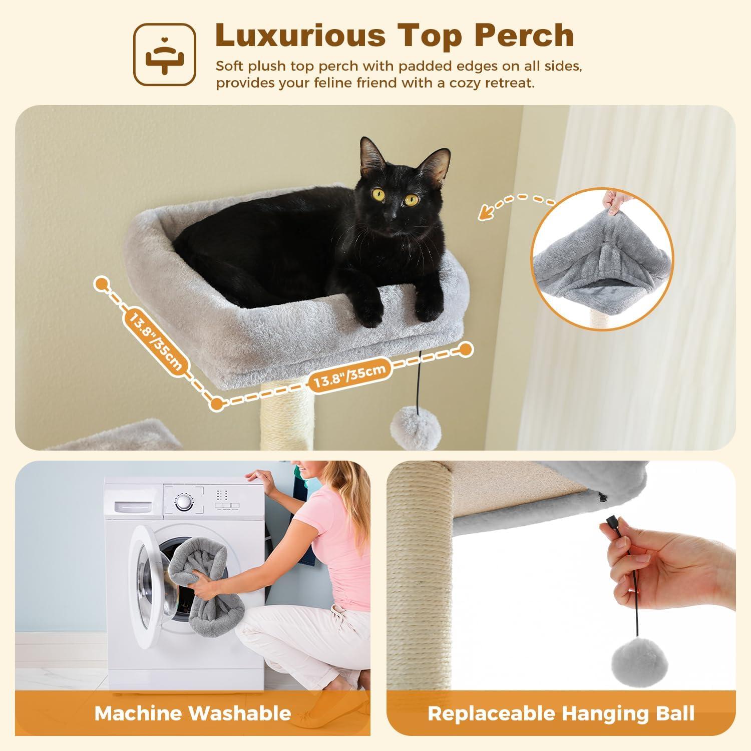 Multi-Functional Layers: Includes a cozy enclosed condo, elevated observation perches, and a hanging hammock—giving cats diverse spaces to nap, play, or survey their territory.