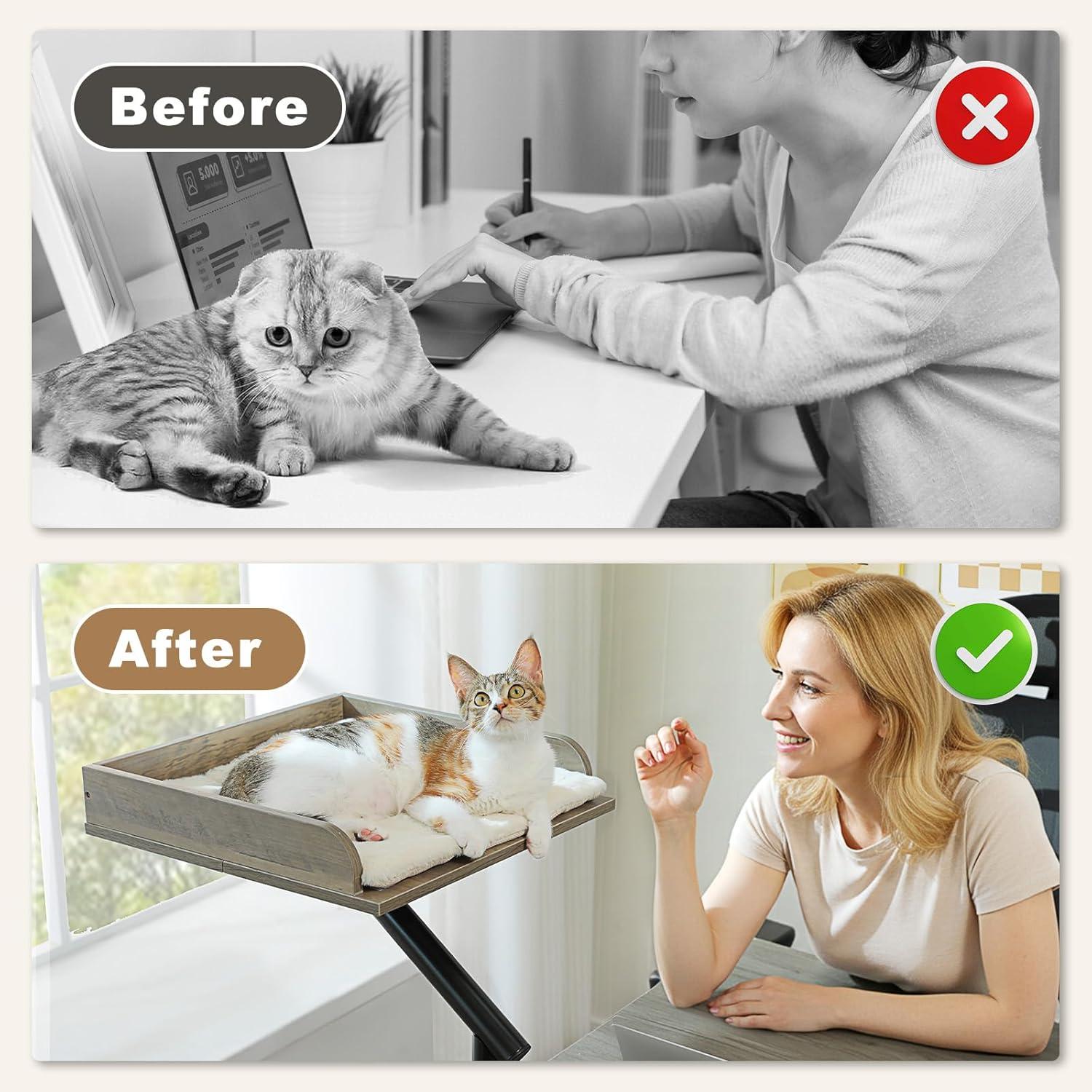 Space-Saving Solution: Ideal for small spaces, this elevated cat bed mounts directly to your desk or table, keeping your feline friend close while freeing up valuable floor and desk space. Perfect for maintaining a clutter-free environment during work or leisure time.