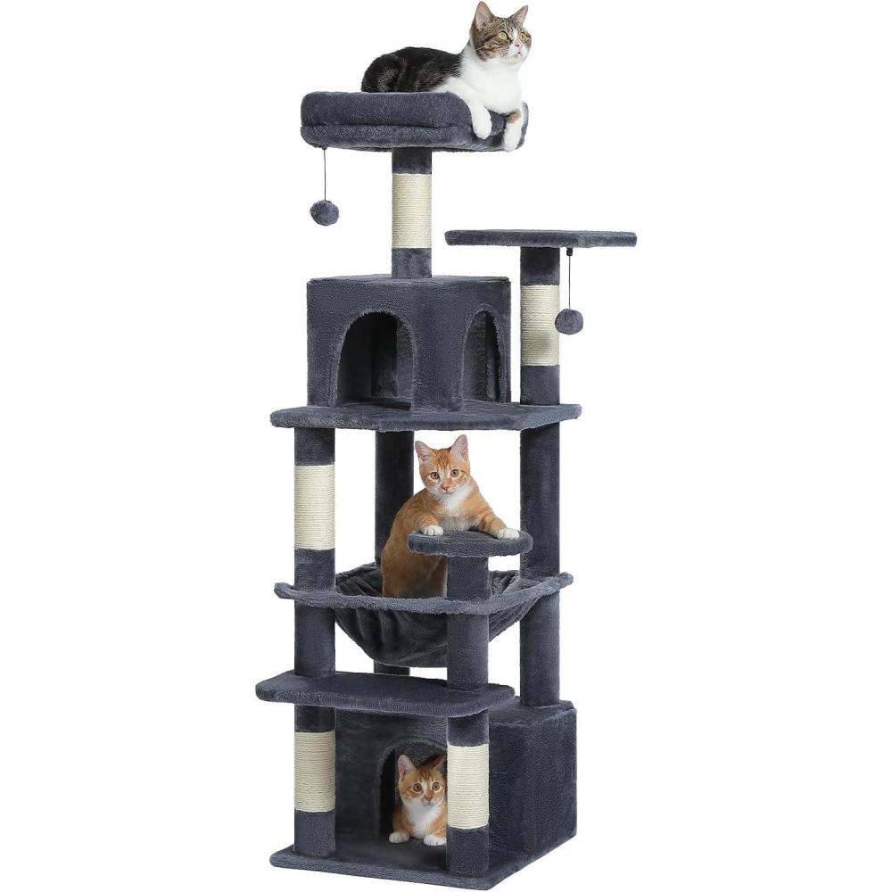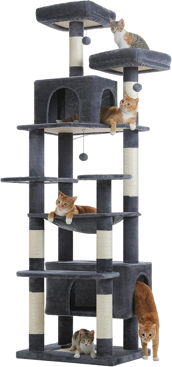 72″ Tall, Endless Climbing Fun: With height of 72″ in 8-level structure, this large cat tree is perfect for 3-5 big cats who love climbing. The needs of scratching, climbing, sleeping and exercising can also be fully satisfied! Especially the unique rectangle super large cat condo and wide hammock are perfect for cats resting together.