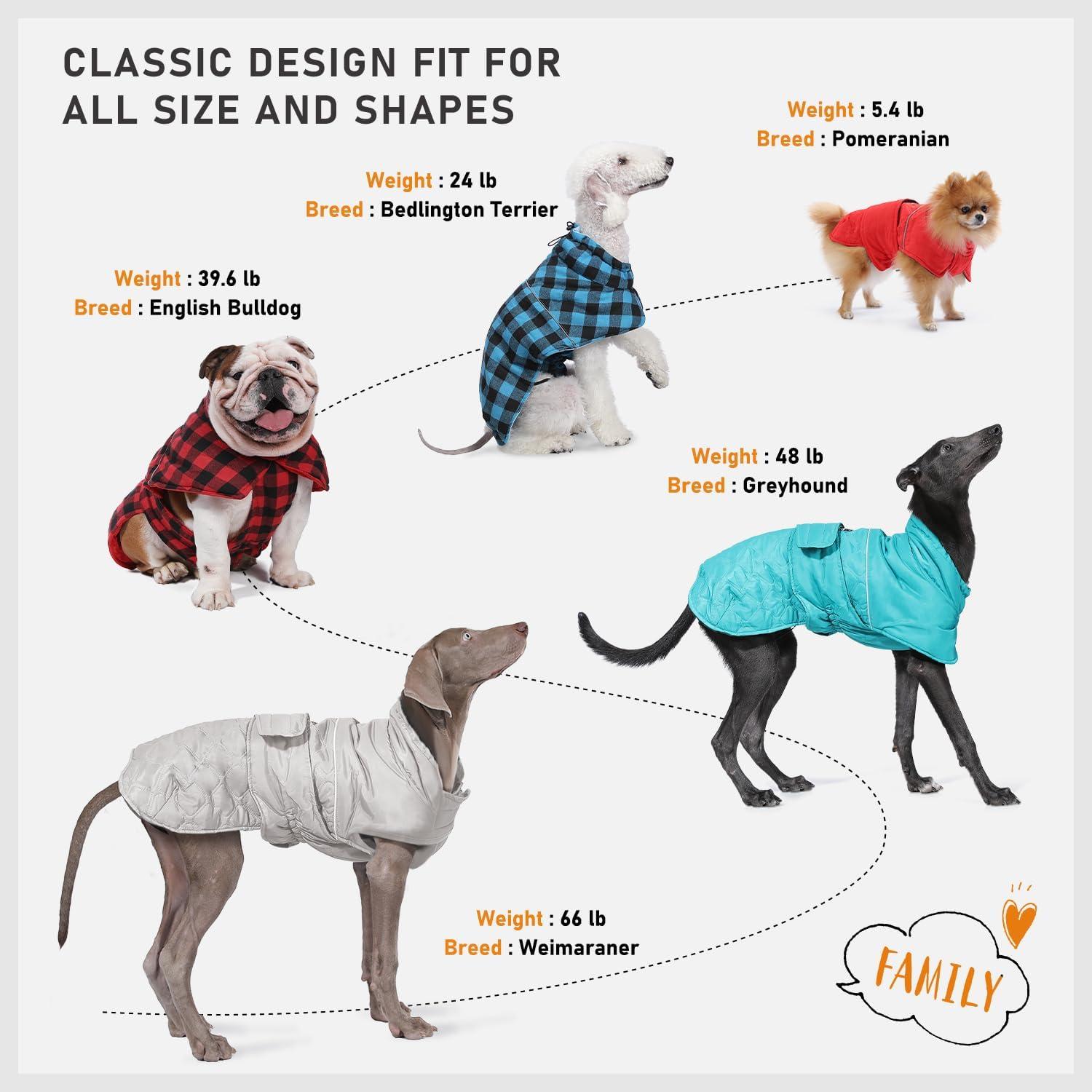 Two Looks in One: This reversible dog coat offers two styles in one. Just flip it over for a new look! The classic British plaid side is perfect for indoor wear, while the plain side is ideal for outdoor activities like hiking and walking. It's one coat with two distinct styles.