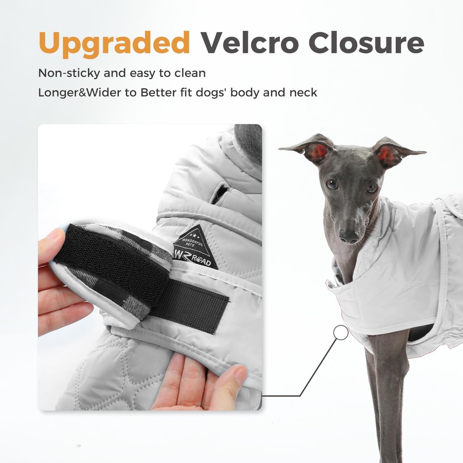 Design for Perfect Fit: With velcro closure and adjustable elastics on the collar and chest, this dog coat is easy to put on and take off, while the elasticated loops on legs make clothes better fit the body curves. Also, we upgraded the velcro closure, which is non-sticky and easy to clean, longer&wider to fit all size dogs’ neck and body.