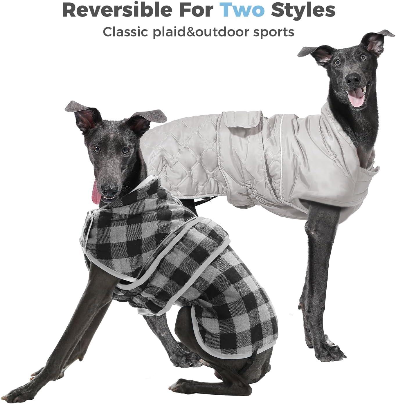 PAWZ Road Dog Winter Coat with 5 Layers Warm Material, Reversible Dog Clothes with 2 Sides, Dog Jacket Outdoor Water Repellent, (Green Plaid 2XL)(Beige Plaid)